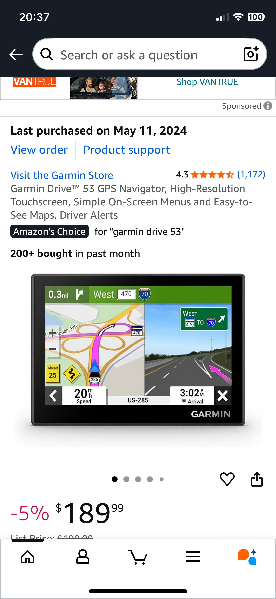 2024购买的Garmin Drive 53 导航仪原价$199