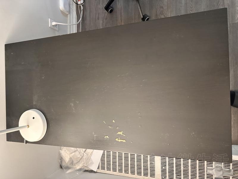 忘记桌子是不是宜家的了,但质量很好,只是桌面有些磨损。桌子尺寸:120厘米(长)x 60厘米(宽)x 73厘米(高)