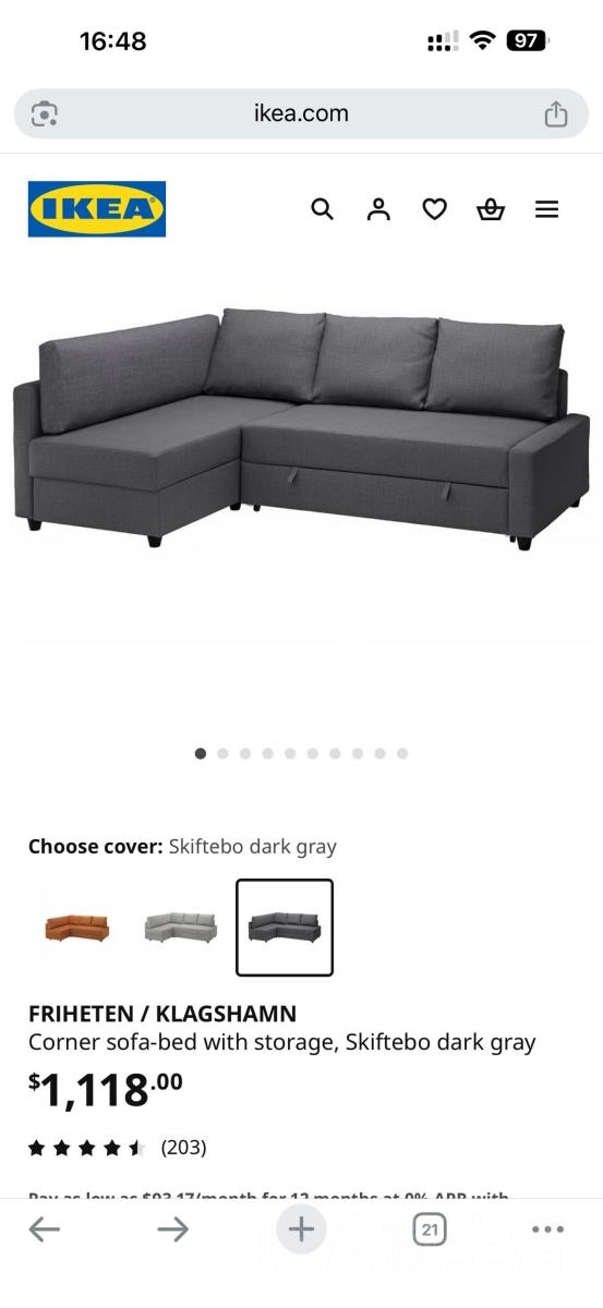 宜家L型沙发床,300自提。