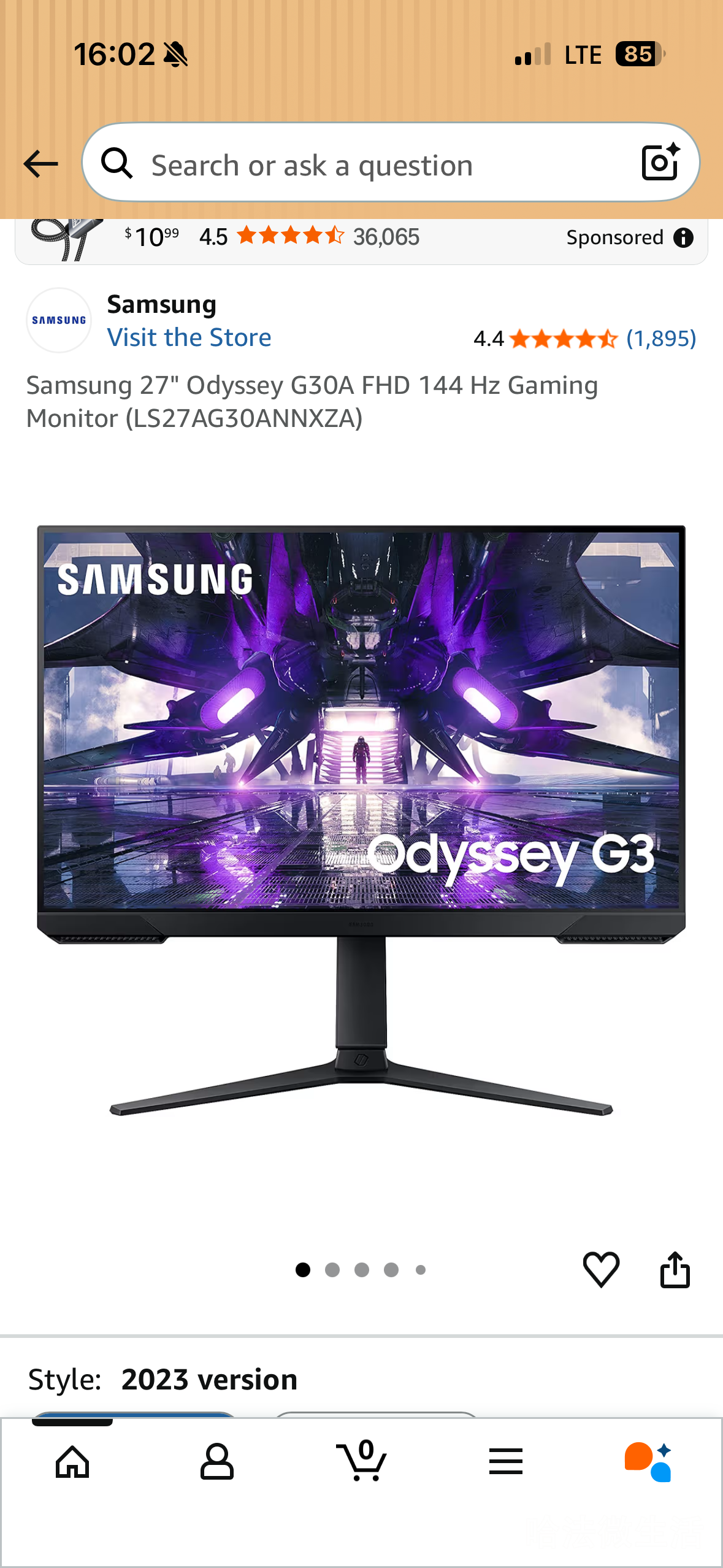三星G3 显示器,27寸,144hz. 1080p. 去年买的。140刀。