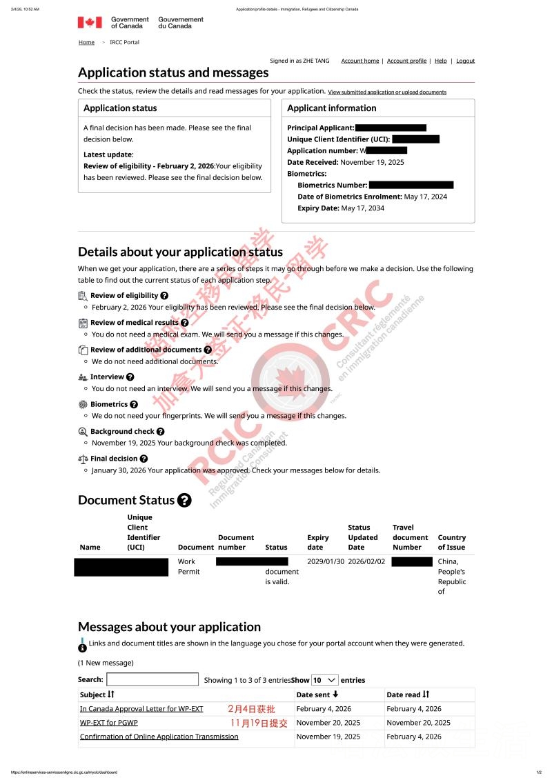 恭喜我们超时空移民留学的两位客户成功获批毕业工签!最快2个半月顺利获批。